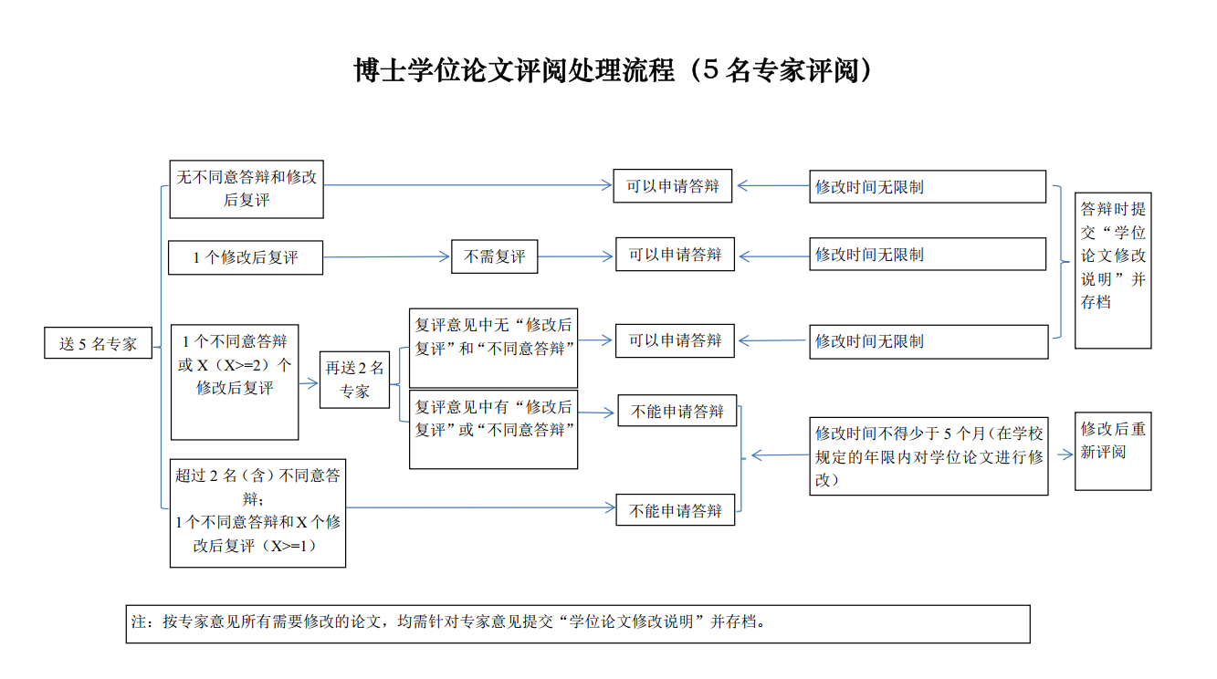 院内抽审论文,隐名评阅,送审院内专家。专家评阅结果出现“修改后复评”,“不同意答辩”意见,修改论文后再次院内评审。“修改后复评”再送审1个专家,“不同意答辩”再送审2个专家,直至论文达到评阅意见无“修改后复评”、“不同意答辩”意见。