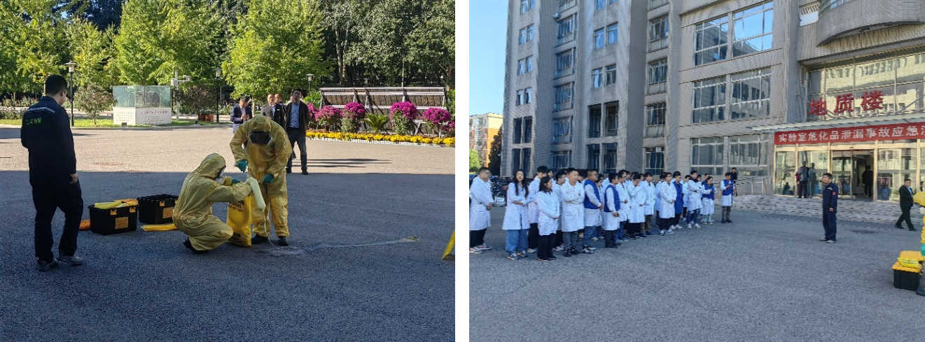 学院积极组织实验室老师、实验员、督查组成员以及相关学生参加学校安全办举办的实验室安全周讲座活动、实验室安全知识答题活动。在地质楼321实验室组织相关教师和学生参加地质楼危化品泄露应急演练活动,熟悉处理流程和应急疏散;在422实验室,学院安全员师生宝现场讲解气瓶使用相关知识,帮助各位师生更安全的使用气瓶。学院在安全周之际,开展实验室安全卫生大扫除活动,安全员和实验室安全督查组对所有实验室进行安全卫生检查。通过实践操作和现场观摩等一系列活动强化师生安全意识,掌握安全操作技能,提升应急处理能力,保障教学和科研实验的顺利开展。