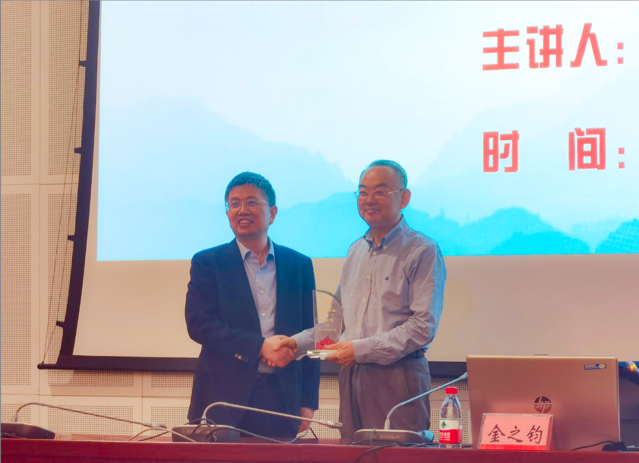 金衍为金之钧院士颁发了“蟒山讲坛”纪念牌。