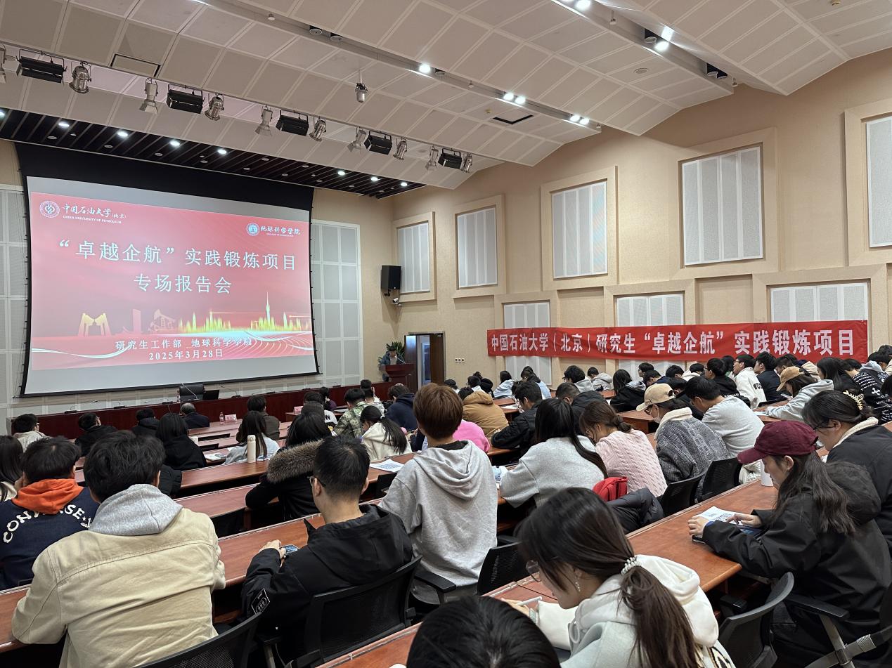 为深入贯彻党的二十届三中全会精神,贯彻落实教育强国建设规划纲要,充分发挥校企协同育人作用,推动构建行业特色型沉浸式“大思政”育人体系,着力提升研究生专业素养和实践能力,地球科学学院于2025年3月28日在主楼C308举办中国免费一级毛片(北京)研究生“卓越启航”实践锻炼项目专场报告会,会议特邀青海油田公司首席专家、教授级高级工程师李江涛先生担任主讲嘉宾,地球科学学院党委副书记王茹出席会议,学院130余名2024级硕士研究生现场聆听报告,会议由辅导员刘俊鑫主持。