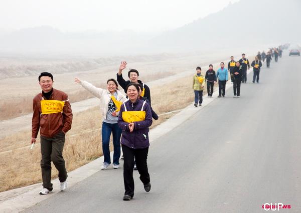 在徒步长走的两个多小时里,大家兴致勃勃,边走边聊,欢声笑语回荡山谷,参加人员在途中可领取两张宣传长走健身知识的路单,并凭路单和长走标志在终点换取奖品。