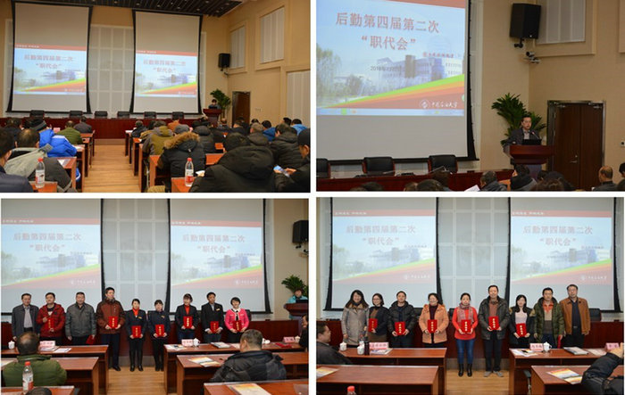 2018年1月23日,石大后勤第四届第二次“职代会”在主楼C308报告厅隆重召开,来自后勤管理处和六个实体公司的75名正式代表和15名列席代表参加了会议。