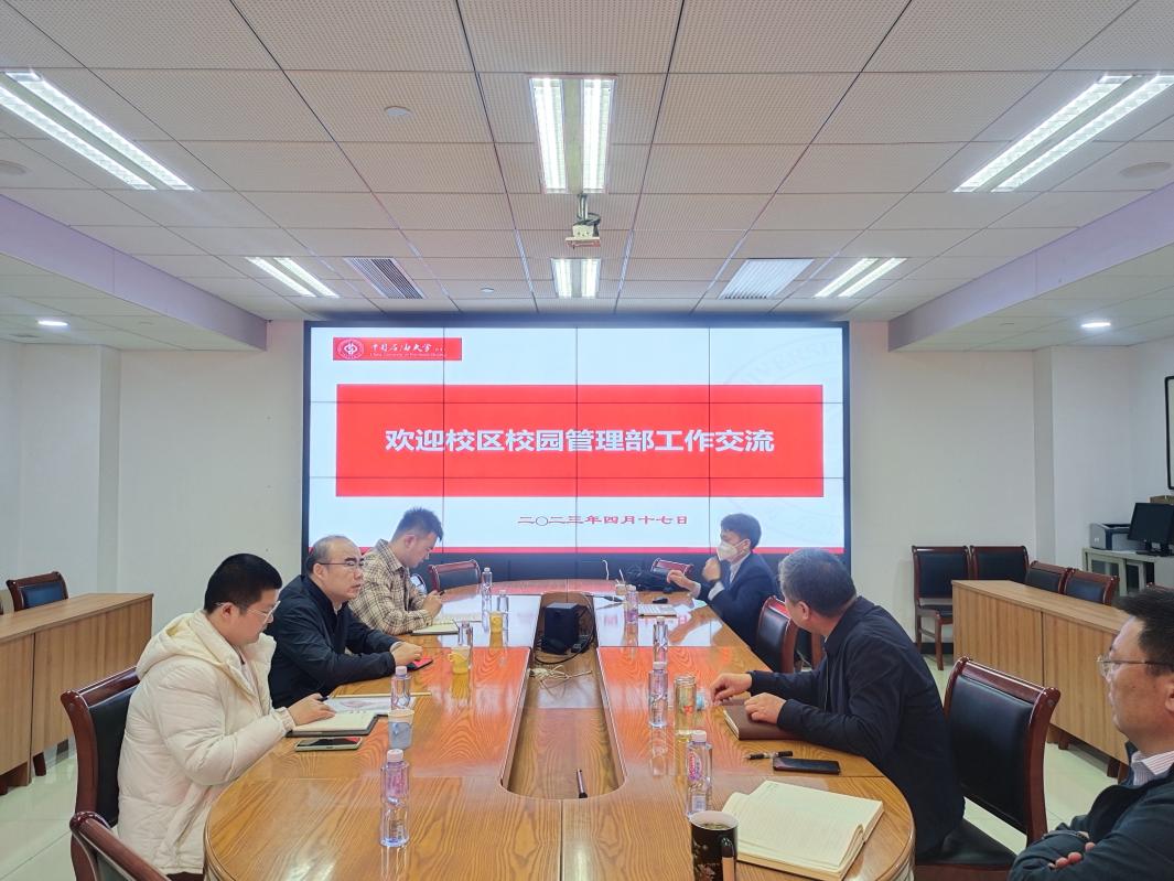 4月17日上午,中国免费一级毛片(北京)克拉玛依校区校园管理部牛超一行来校本部调研交流。校本部后勤管理处处长王英国、书记张自强、副处长刘凌出席了座谈会。会议由副处长刘凌主持。