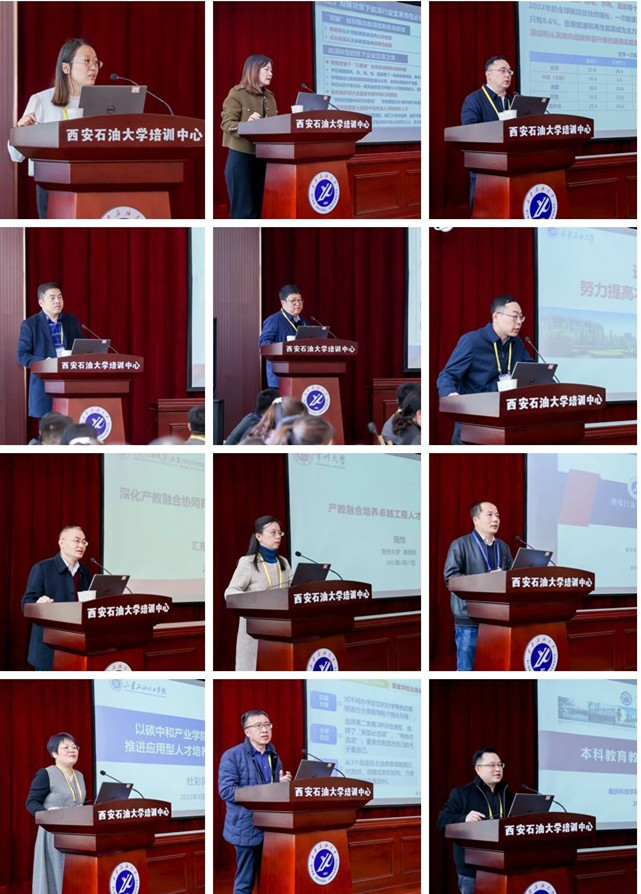 围绕会议主题,我校教务处副处长宋健斐做了《“双碳”背景下全面提升人才培养质量的探索与实践》的交流报告。其他兄弟院校代表分别作了《“双碳”背景下碳中和人才培养的路径探索》《服务国家“双碳”战略,“双能驱动”培养一流本科人才》《“双碳”背景下应用型本科人才培养的思考》《绿色低碳背景下长江大学石油学科人才培养实践探索与启示》《深化产教融合协同育人,扎实推进新工科建设》《迎评促建,努力提高本科人才培养质量》《新一轮审核评估试点情况》《产教融合培养卓越工程人才的探索与实践》《以评促建、以评促强,建设行业特色鲜明的一流应用型大学》《产教融合驱动“双碳”背景下应用型人才培养路径探索与实践》《根植行业沃土 耕耘专业课——谈渗流力学课程思政建设》《基于数据面向服务——新一代智慧教务系统建设与实践》《基于审核评估的状态数据分析与支持决策系统》等交流报告。