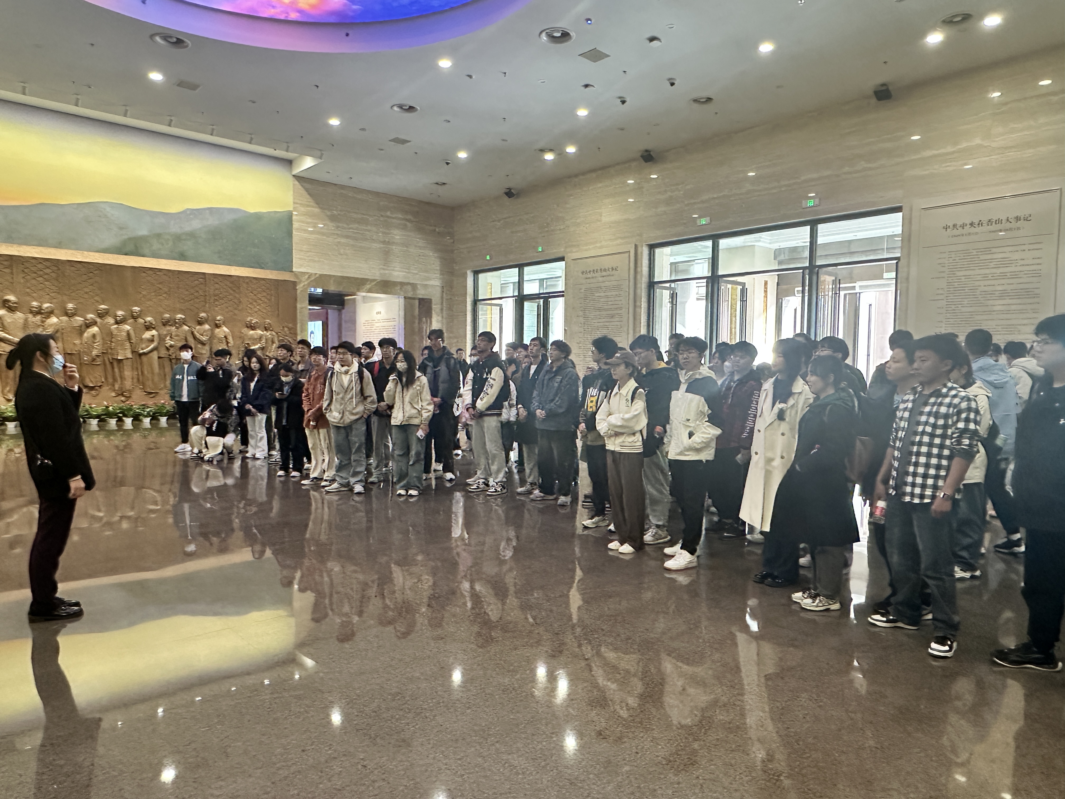 实践研学环节,培训班班主任李健、贾彦坤带领积极分子赴香山革命纪念馆参观学习,回顾中国共产党领导中国人民夺取全国胜利和党中央筹建中华人民共和国的光辉历史,缅怀毛泽东同志等老一辈革命家的丰功伟绩,重温赶考之路,展望复兴征程。
