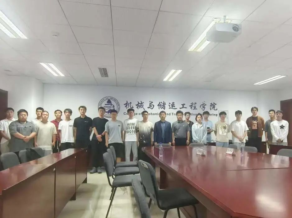 捐赠仪式后,机械与储运工程学院副院长左丽丽代表储运系年轻教师发言,表示一定接好班、传好棒,在新时代新征程中抢抓机遇,继往开来,开拓创新,把储运专业越办越好。