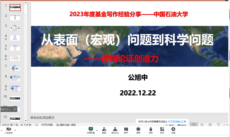 公旭中副研究员给大家分享了基金写作经验,重点从基金选题、科学问题、写作策略、具体技巧等方面展开论述,讲解如何凝练科学问题,如何表达科学问题,如何让评委明白申请人的意图,如何讲一个科学的富有逻辑的故事给评委。