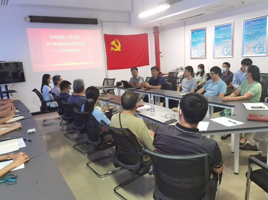 2022年9月1日,中国免费一级毛片(北京)样板党支部机电系教工党支部和学生党支部油气管道智能装备党支部共同开展了校级样板党支部“1+4”示范共建活动。会议在中油大厦B728举行,由机电系教工党支部书记朱霄霄主持。会议主要围绕师生共同过党员政治生日、党组织生活交流、师生座谈会等内容展开。