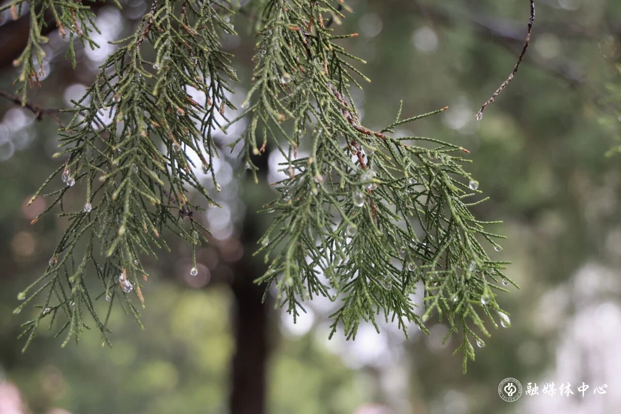 碎银般的雨珠串起整个校园,撑伞走过潮湿的小径,听雨打叶梢的簌簌声,仿佛时光也放慢了脚步。