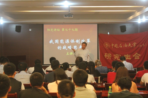 9月12日晚,石大在中油大厦312举办第77期阳光讲坛。国家发展改革委能源研究所副所长李俊峰作为主讲人,以“中国能源体制改革的战略思考”为题,为石大师生带来了一场报告。