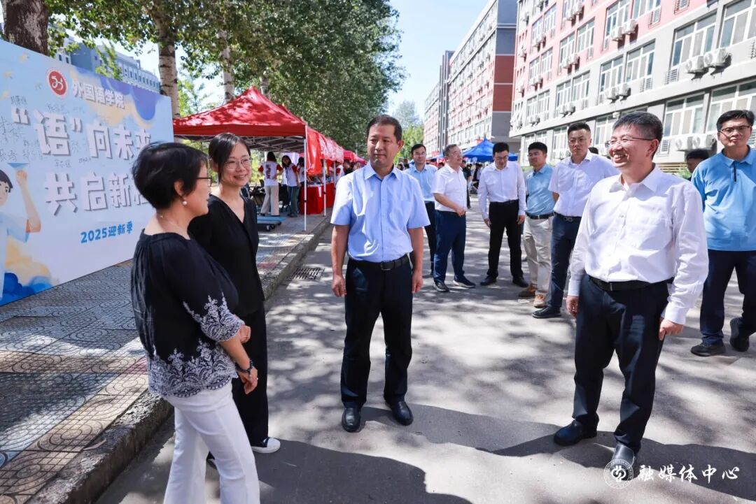 在外国语学院迎新处,王同奇、金衍了解复合人才培养情况,强调要扎实开展系统调研,认真倾听学生反馈,动态调整优化培养方案,培养更多服务国家战略的高素质复合型人才。