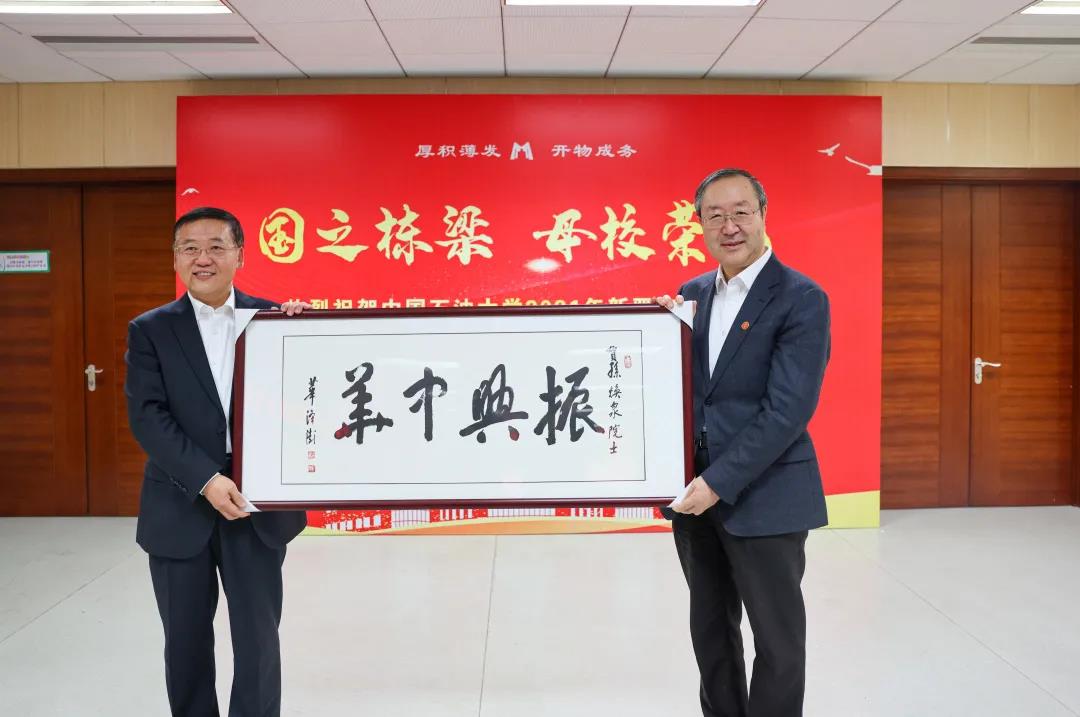 孙焕泉院士深情回顾了自己的求学经历,对母校多年的培育培养、老师们无私的教育教诲表示诚挚谢意。他说,从母校走出去,“深感学校的根和魂是属石油的,我们身上都带着油味儿,学校的办学理念让我们终身受益”。他回顾了自己在国家、母校的培养教育下不断成长进步,心怀“我为祖国献石油”的信念,攻坚克难,通过做“加法题”“减法题”“立体几何题”投身胜利油田、开展科研创新的实践历程。他表示,当选院士深感责任重大、使命光荣,将深入落实习近平总书记视察胜利油田的重要指示精神,立足本职工作,为解决“卡脖子”技术、端牢能源饭碗贡献力量,为母校增光添彩。