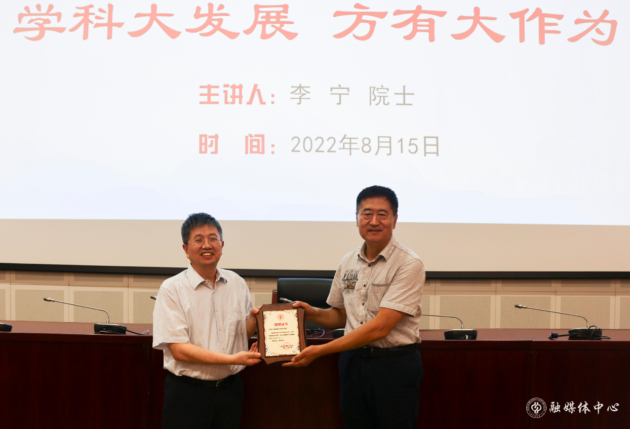 报告后,吴小林为李宁院士颁发了“蟒山讲坛”纪念牌。