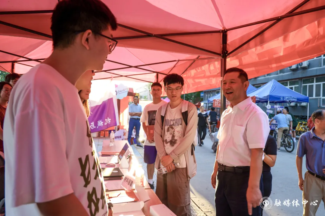 在报到现场,各学院和校研究生会向王同奇展示了充满特色的迎新方式和服务流程以及学院精心制作的文创产品等。王同奇仔细询问了各学院新生报道情况,强调要为学生提供便利条件,做好服务保障工作,鼓励学院用有纪念意义的方式为新生留下美好入学回忆。