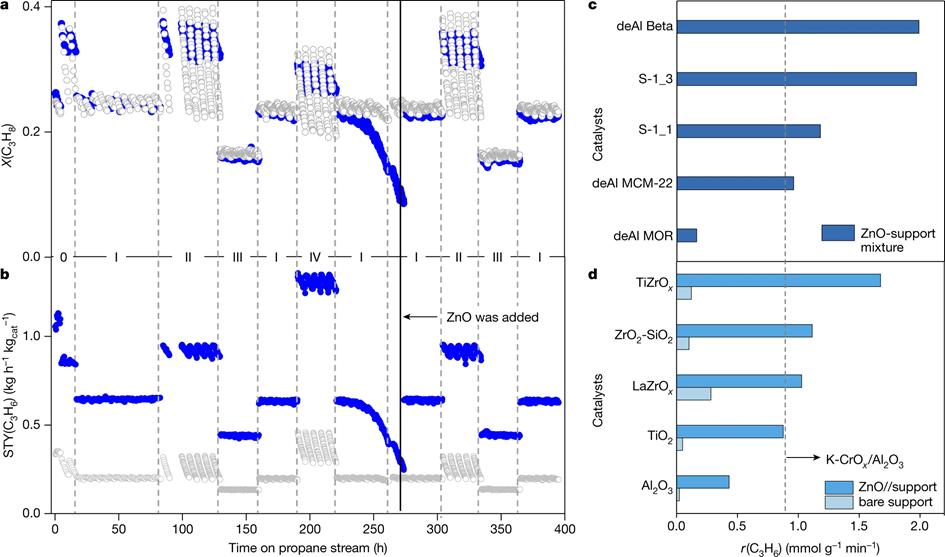 研究结果以“In situ formation of ZnOx species for efficient propane dehydrogenation”(原位形成ZnOx物种用于丙烷高效脱氢)为题, 于2021年11月10日在《自然》(Nature)在线发表。论文链接: