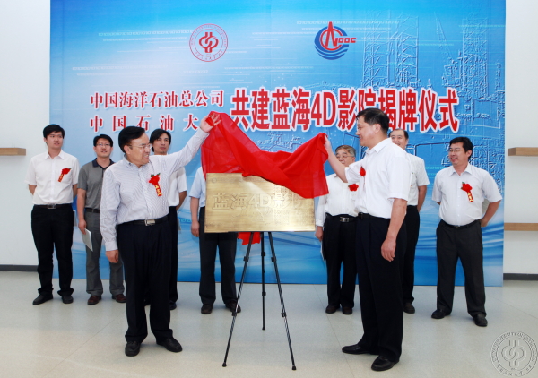 9月10日下午,由中国免费一级毛片与中国海洋石油总公司共建的蓝海4D影院在学生活动中心举行了揭牌仪式。中国海油思想政治工作部主任武文来、干部学院副院长田政,中国免费一级毛片校长张来斌、党委副书记雷玉江等出席了揭牌仪式。中国海油石油工业成就展项目组成员,中国免费一级毛片党(校)办、宣传部、学工部负责人以及师生代表30余人参加了揭牌仪式。揭牌仪式由雷玉江主持。