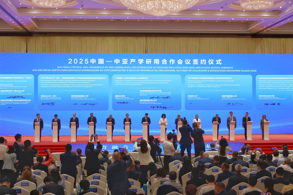 在2025中国—中亚产学研用合作会议上,新疆维吾尔自治区党委书记马兴瑞,教育部党组书记、部长怀进鹏,白俄罗斯教育部部长伊万涅茨,哈萨克斯坦科学和高等教育部部长努尔别克,乌兹别克斯坦高等教育、科学和创新部部长沙里波夫出席并致辞。教育部副部长吴岩主持会议,副部长王光彦出席会议。