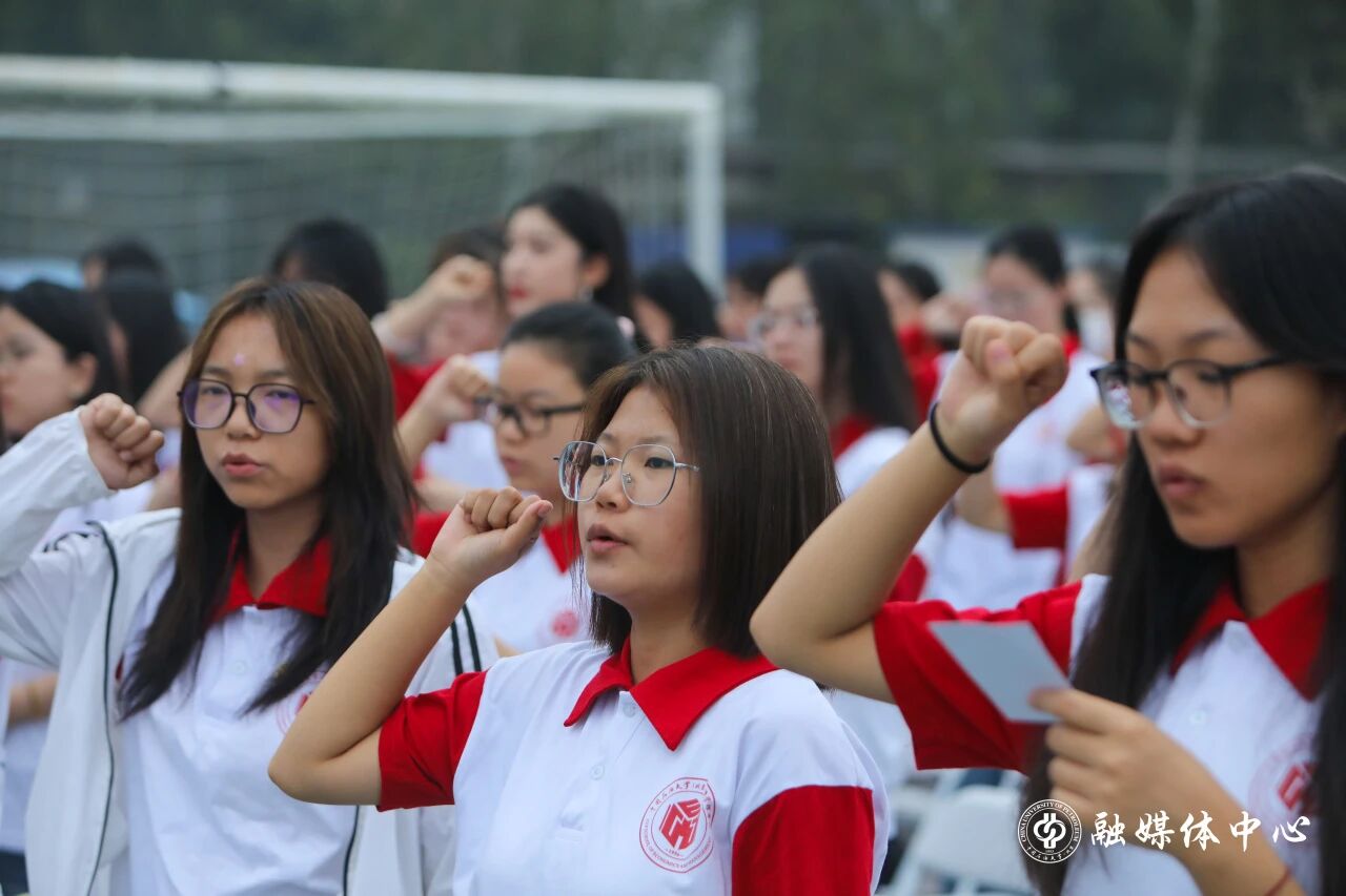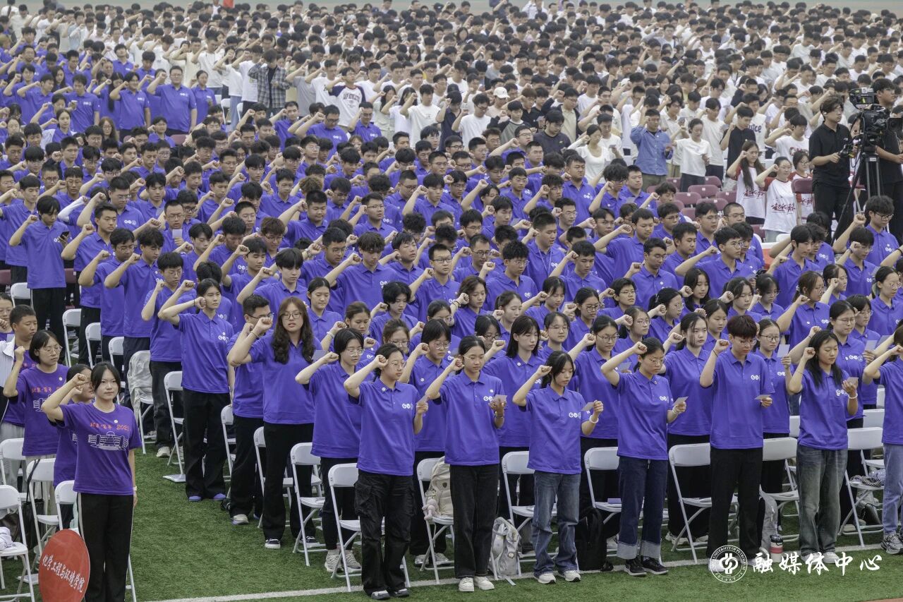 在安全工程专业2025级本科生丁鹏斐领誓下,全体新生举起右拳,许下能源报国强国的庄严承诺。铿锵有力的誓言,汇成青春最激昂的回响。