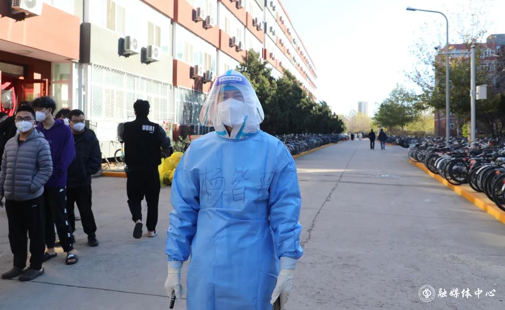 下午三点钟吃完午饭,张冠军给家人报平安。妻子心疼地唠叨:“50多了,高血压,还这么拼命。”张冠军连忙找补:“人家穆桂英53岁还挂帅征西呢,谁说俺男儿家不如女郎啊?!”他说,核酸采样小组里好多老师都是克服了家里这样那样的困难来的,有的家里孩子还小需要照料,有的刚刚失去了亲人,也有像他一样的“50后”“老一代”,“大家都在这个被认为‘高危’的工作中恪尽职守,我也为有幸参与到这样一个群体里而欣慰”。同学们也把张老师化身“大白”的事,在群里广而告之,表达着“师生同在、甘苦与共”的喜悦和感动。