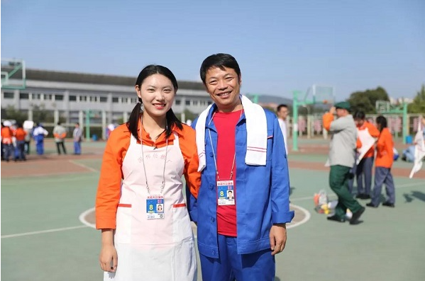 在中国建筑一局(集团)有限公司工作的父亲刘宝全跟女儿石大经济管理学院2018级本科生刘惠文,分属不同的单位却同属8号方阵,分别是不同的身份但却同时代表着产业工人、石油学子去阐释“艰苦奋斗”的深刻内涵,分别站在不同的方阵点位却拿着同样的小红旗做着同样的动作,共同为祖国献上祝福。