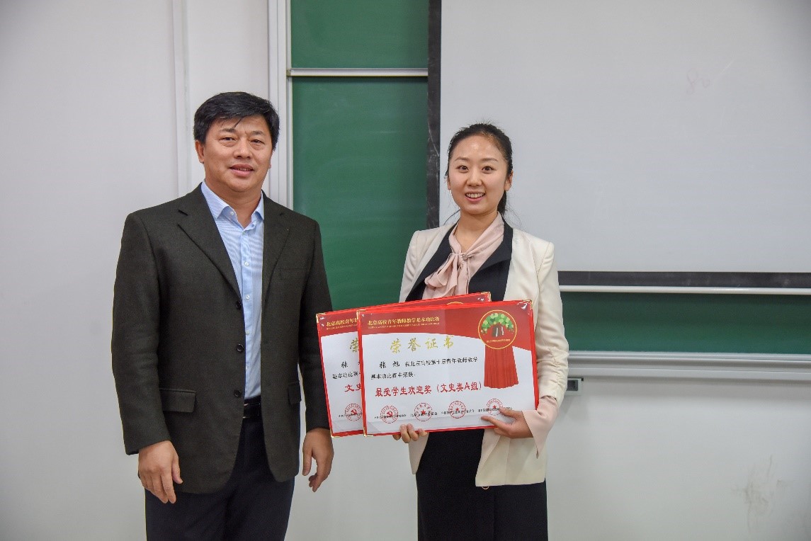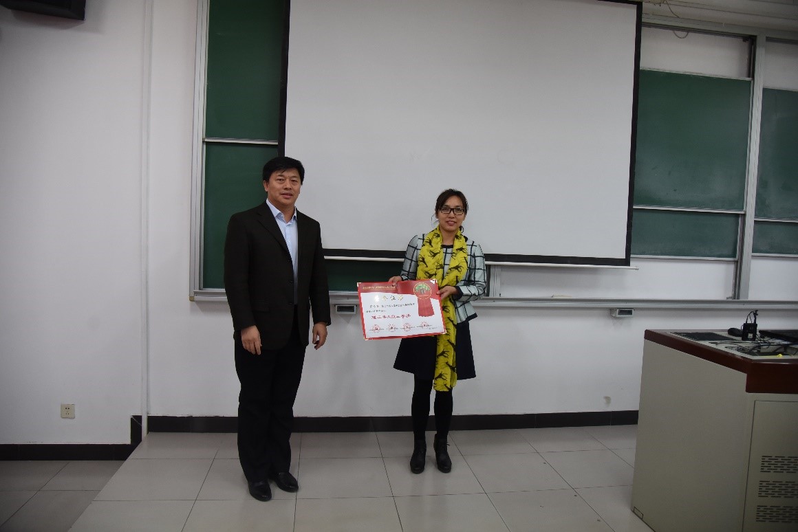 韩克飞为北京高校第十届青年教师教学基本功大赛获奖教师张旭和覃方丽颁发了证书。他指出,20多年来,石大坚持举办青年教师教学基本功大赛,对提高青年教师教学能力发挥了重要作用,一大批青年教师通过该平台成长为学校的教学骨干。他希望全体教师认真学习习近平总书记在全国教育大会上的重要讲话精神,牢记习近平总书记嘱托,心无旁骛,甘守三尺讲台,潜心施教,培养高素质人才,为写好石大“奋进之笔”作出自己的贡献。