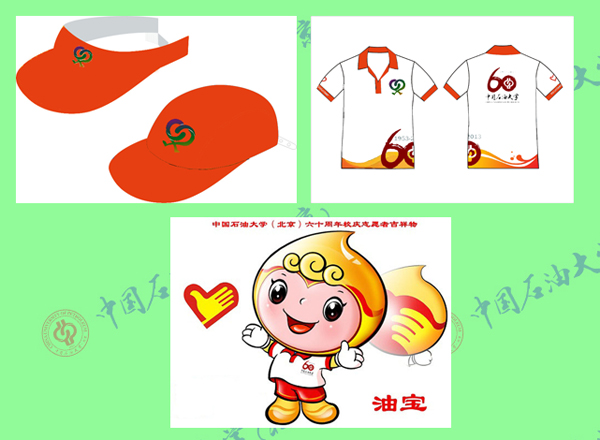 校庆志愿者服装设计者为地球物理与信息工程学院穆义卓同学。作品包括帽子、上衣和裤子。服装的主色调为橘红色,象征着青春,热情和朝气,体现校庆志愿者青春奉献的特点。帽子正前方和上衣胸前均印有60周年校庆志愿者logo,上衣背后和侧身印有60周年校庆logo,表明了志愿服务的对象和主题。上衣和裤子均采用流水状橘红色底纹,体现志愿者“石志不渝,油芳百世”的口号。