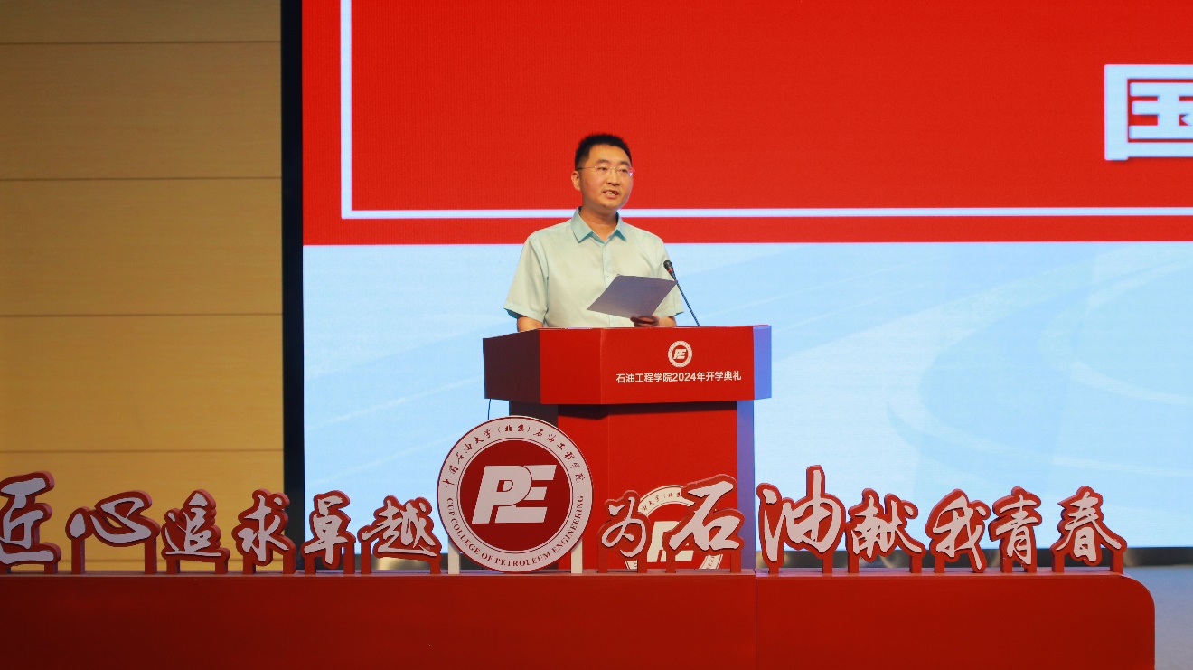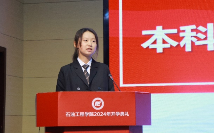 2024级本科生新生代表孙文睿表示将以“士不可不弘毅”的信念磨砺品格,以“吾将上下而求索”的坚持增长知识,以“请党放心、强国有我”的担当锤炼本领。本科生在校生代表张安迪用专业学习、科研创新、学生工作、社会实践、志愿服务五个方面的亲身经历,激励新生树立能源报国之志。2024级研究生新生代表李明伟对求学之路上给予关心、帮助的家人、师长、朋友表示感谢,并承诺在读博之路上奋力奔跑,为能源强国建设贡献青春力量。研究生在校生代表马梦琪回顾了在中石大石油工程学院的求学之路,向全体新生分享了“十年之约”的所得所悟,并用“勤勉”“笃行”“炼体魄”三个关键词与新同学共勉。