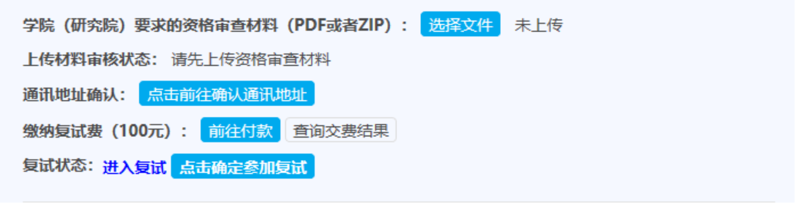 所有进入复试的考生均须在学院规定的时间内,通过我校研究生招生管理信息系统(http://gmss.dgshinko.com/logon)选择“硕士研究生复试录取”栏目完成“复试确认(资格审查材料上传、缴费)”、“意向导师选择”。