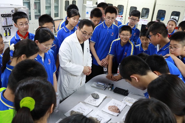 在沉积动力过程模拟实验室,学生们参观了我国首个现代化沉积地质模拟实验室。通过观察水槽中沉积物的搬运堆积过程,配合三维激光扫描仪、超声流速剖面测量仪等高精度设备的演示,学生们对地质作用有了更直观的认识。