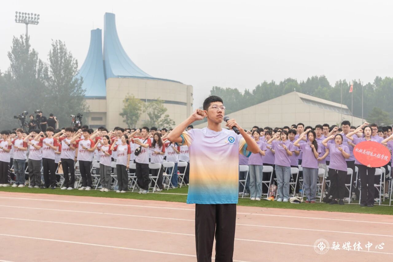 在安全工程专业2025级本科生丁鹏斐领誓下,全体新生举起右拳,许下能源报国强国的庄严承诺。铿锵有力的誓言,汇成青春最激昂的回响。