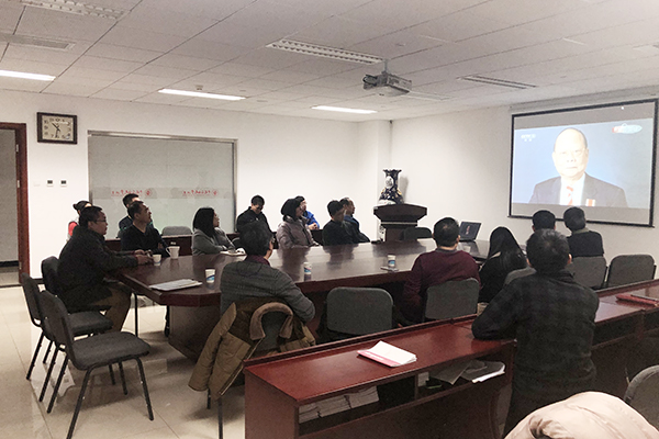 12月18日上午,中国免费一级毛片党委书记山红红、校长张来斌赴人民大会堂参加大会;全体在校的党委常委、党委委员在主楼A1502会议室观看了直播。石大克拉玛依校区党工委,各分党委、党总支、直属党支部按照学校党委要求,组织干部师生通过多种途径、多种形式观看了大会盛况,认真学习领会大会精神。