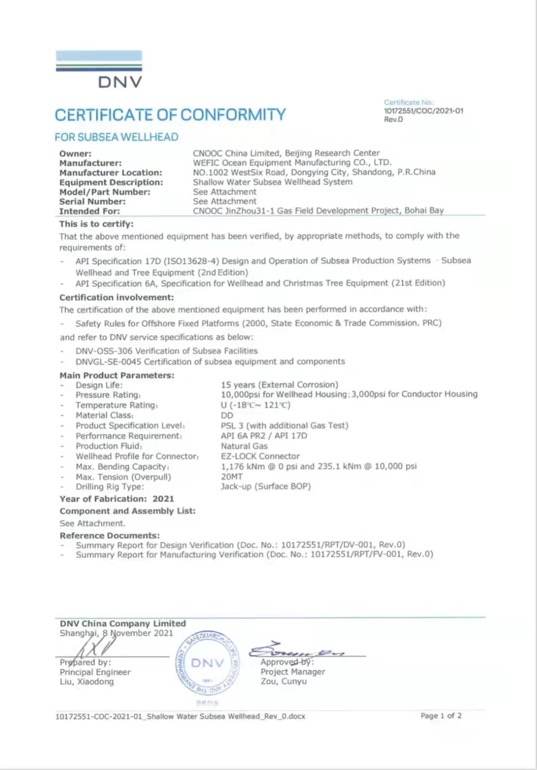 我国首套国产化浅水水下井口疲劳计算结果顺利通过挪威船级社审查