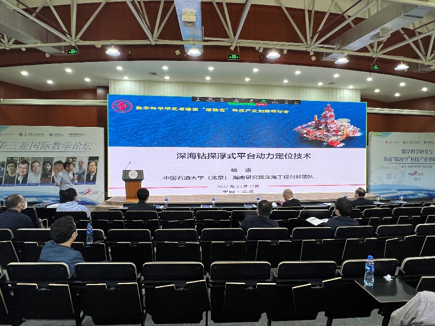 杨进教授从世界海洋油气发展、中国海洋油气发展,引出了深水动力定位平台,介绍了中国最先进的、最具代表性的平台—HYSY981,提出了深水浮式平台定位难题以及数学方面的需求,通过HYSY981的真实案例,介绍了相关的计算方法,同国际上众多公司对比,希望同在数学的引领与带动下,解决浮式平台定位的难题并早日实现国产化。