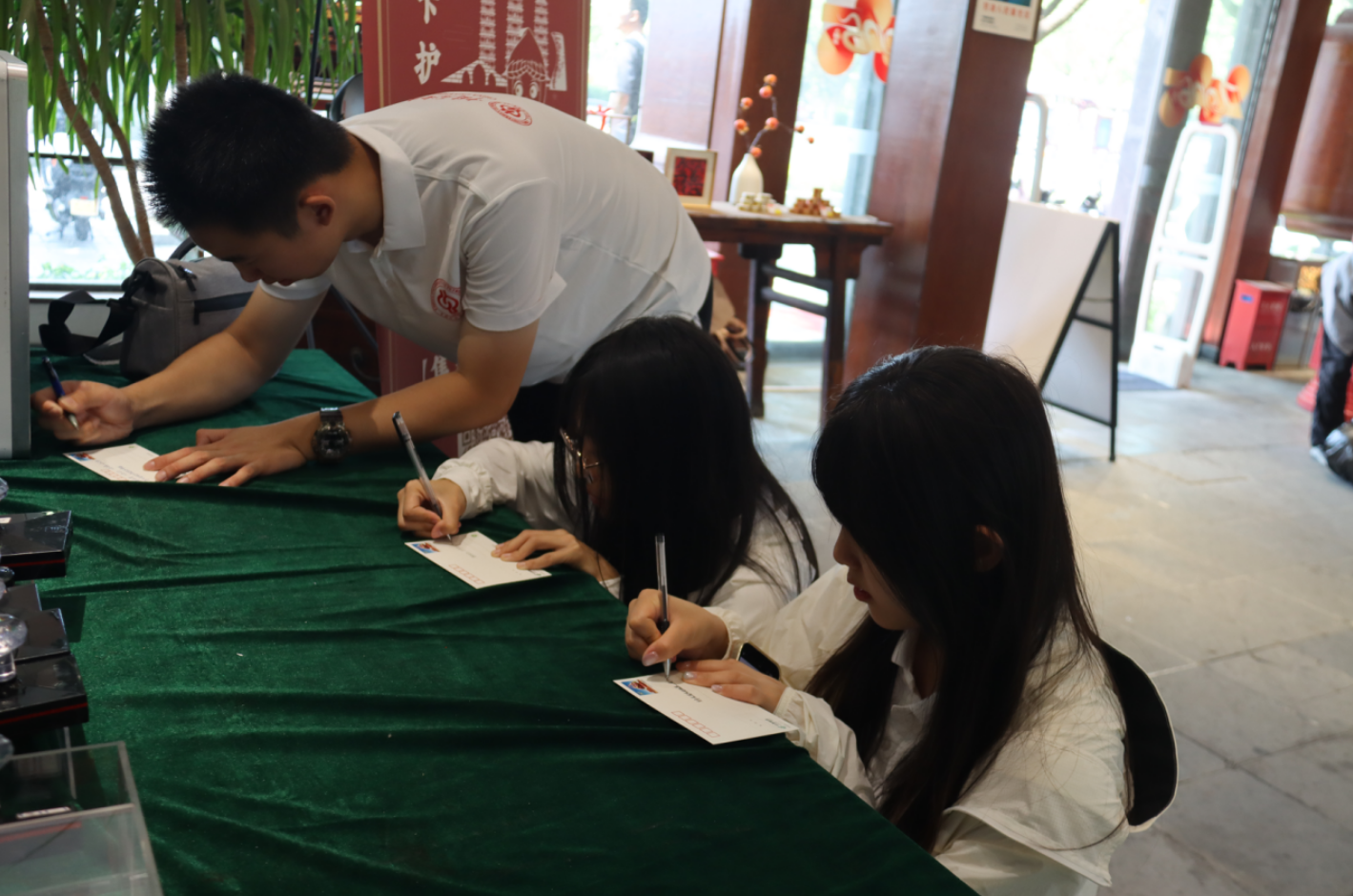 实践团来到嘉兴市南湖公园,瞻仰中共一大旧址。团队成员以史料为依托,在红船前录制讲解视频,阐释中共一大会址从上海转至南湖的历史经纬,刻画百年前革命前辈们擘画民族复兴的场景,解读、宣传红船精神。在南湖湖畔,团队成员写下饱含赤诚信念的信件,将青年的宣言落于纸上。
