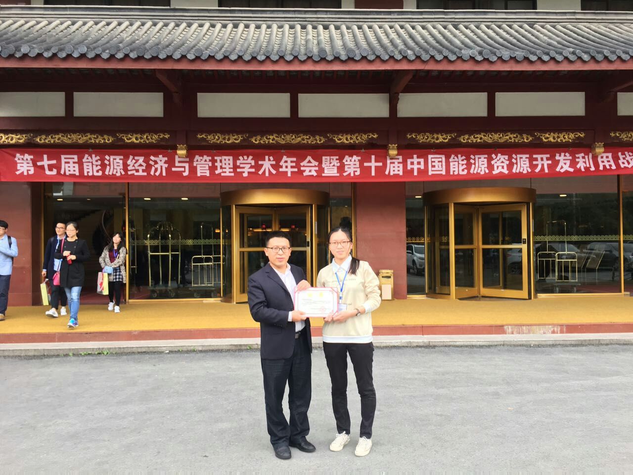 本校工商管理学院产业经济学2016级硕士研究生叶晓妹同学在导师赵晓丽教授的指导下,两人一起完成的论文《以电代煤的经济与环境效益分析》获得了“中国能源经济与管理优秀研究生论文三等奖”。