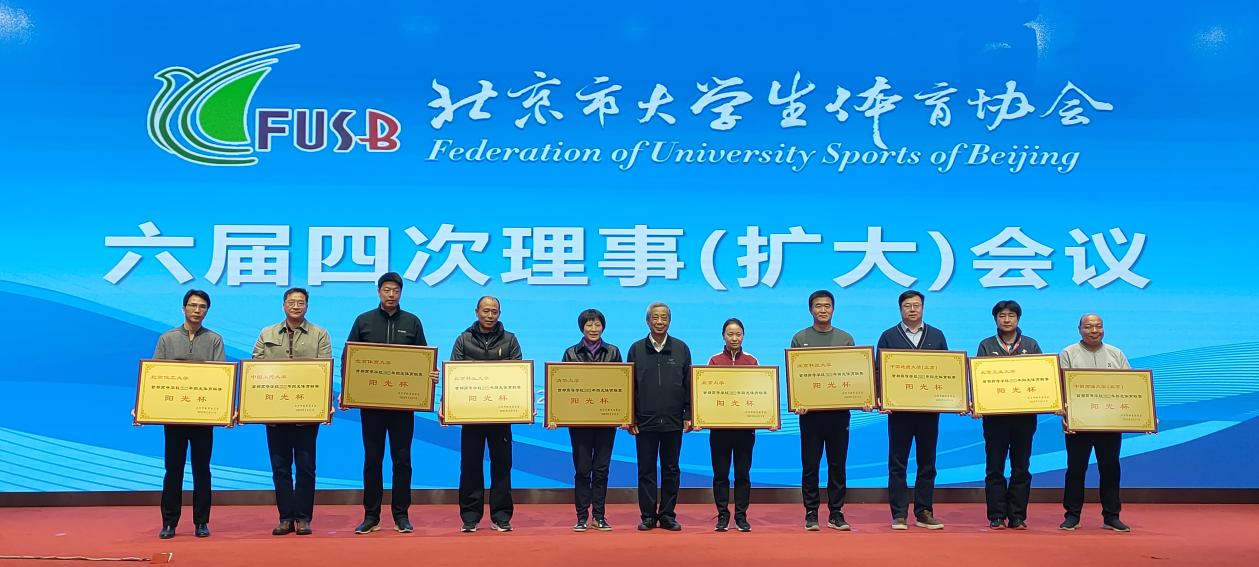 3月11日,北京市大学生体育协会第六届四次理事(扩大)会议顺利召开,我校体育与人文艺术学院相关代表参加了此次会议。本次会议总结了过去一年北京市大学生体育活动的整体工作,表彰了阳光体育联赛优胜学校,我校包揽了2022年首都高等学校阳光体育“朝阳杯”和“阳光杯”全部荣誉。为促进首都高校体育工作,北京市教委设立了“朝阳杯”与“阳光杯”两个奖项。我校在首都高等学校2022年“朝阳杯”阳光体育联赛中积分得792分,获得甲组第六名。在“阳光杯“中积分得1279分,获得第九名。近年来,我校落实立德树人根本任务,将体育课堂教学与校内外群体竞赛相结合,积极推动各项大学生体育赛事,构建校园群体竞赛新体系,促进课程、社团、代表队竞赛与“阳光体育”锻炼等课内外一体贯通,已经取得了一系列的成绩,期待未来可以创造更多的成绩与突破。