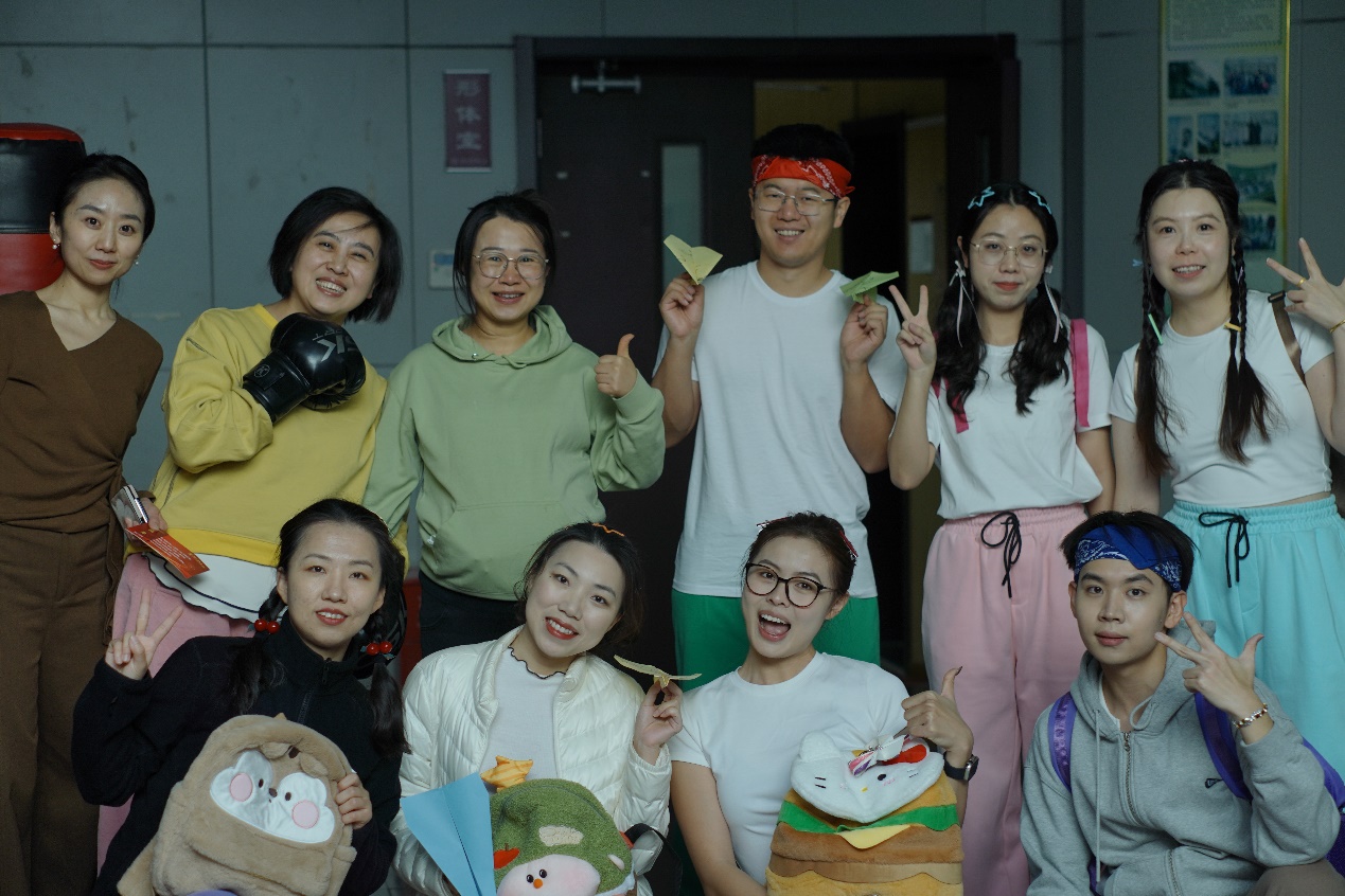 在周博男老师的指导下,两院教师在一次次的排练中逐步适应舞步、找到节奏。经过所有老师一个月的共同努力,阳光男孩、阳光女孩们最终向全校教师呈现了一场活力四射、动感热烈的舞蹈节目,点燃整个联欢会的气氛。