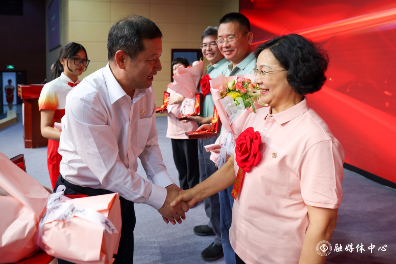 奋斗无悔,平凡不凡。从灼灼芳华到两鬓霜华,他们甘为人梯、丹心化雨、润物无声,他们为学校发展奠定了最坚强的基石。学校的建设发展凝聚着一代又一代中石大人的心血和汗水,荣休教职工将青春和智慧留在了中石大的校园里,用贡献和荣耀与学校的发展同向同行。他们身上既沉淀了一代学人的学术光华,也浸润着数十年的爱校奉献之心。今年,全校共有50余位默默耕耘在教育沃土上的老教师光荣退休。本年度教师荣休仪式以《致·“石”光》的纪念短片致敬本年度退休教师在学校的美好年华。大家深情回顾了从教以来在学校工作生活、教书育人的心路历程,赞叹学校日新月异的发展进步,感谢同事、师长的帮助支持,也表达了对学校未来发展的美好祝愿。党委书记王同奇为本年度退休教师代表颁发了纪念徽章,感谢他们在各自岗位上发挥光和热、对学校发展的奉献。