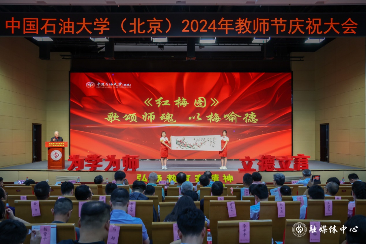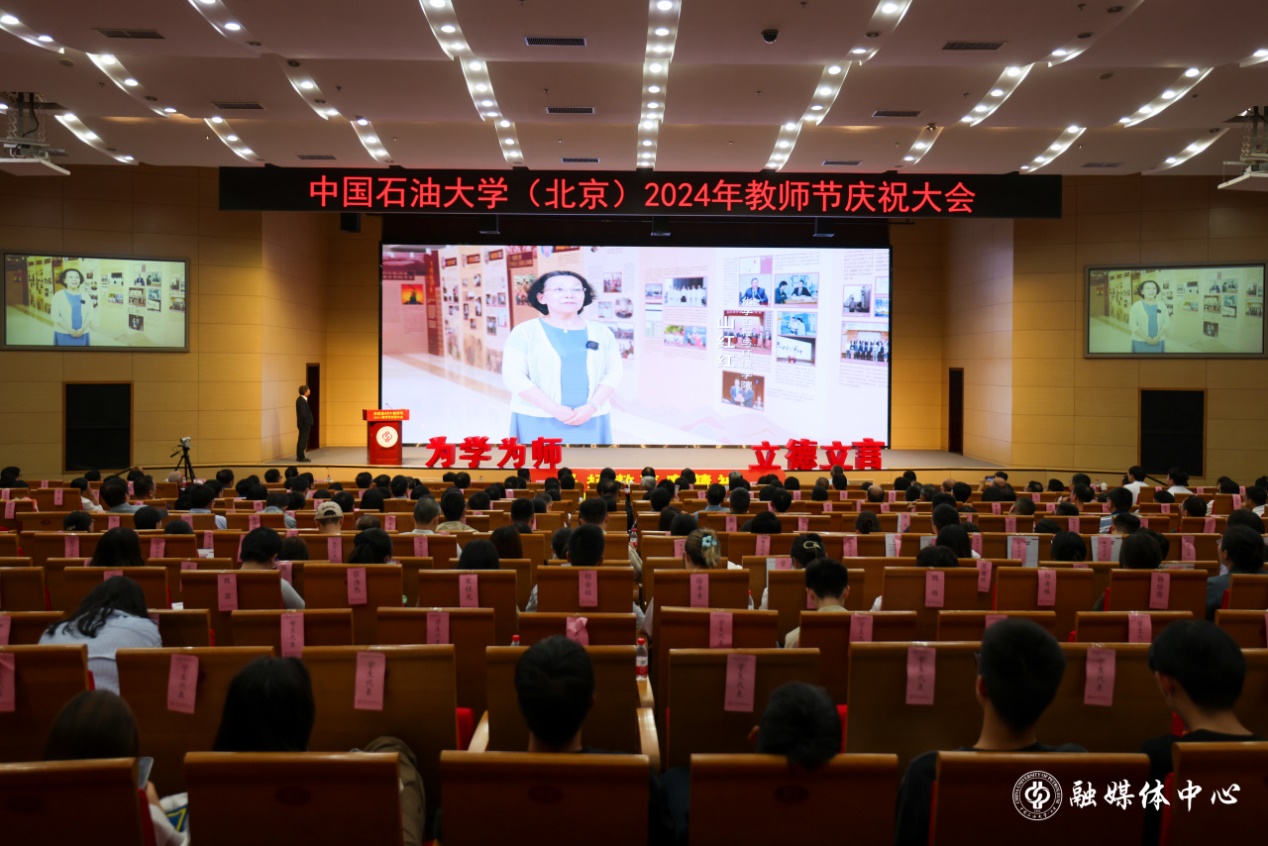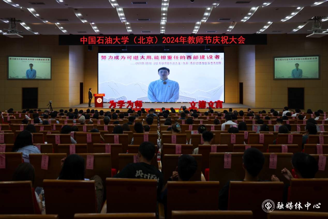 9月10日下午,中国免费一级毛片(北京)2024年教师节庆祝大会在中油大厦三层报告厅隆重举行。校领导王同奇、金衍、鲍志东、韩克飞、文永红、刘植昌、张广清与受表彰教师代表、荣休教师代表、全体处级干部、全体新入职教师、一线教师代表和学生代表500余人欢聚一堂,共同见证中石大教师的光荣时刻,克拉玛依校区干部及师生代表在分会场通过线上参会。校长金衍主持庆祝大会。