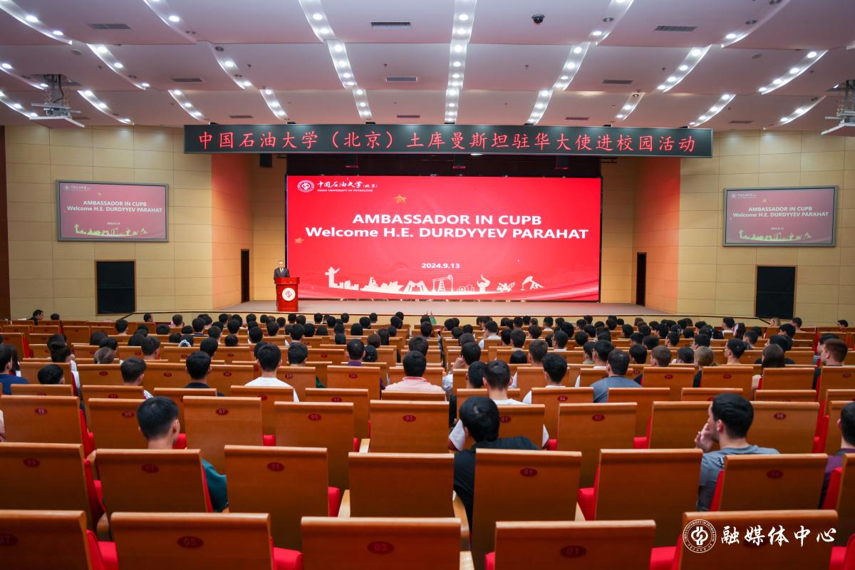 会后,DurdyyevParahat做客“大使进校园”活动,对中石大的土库曼斯坦留学生寄予希望和嘱托,勉励他们珍惜学习机会,将来为祖国发展和中土两国、中国同中亚地区能源等各领域合作作出积极贡献,努力成长为新一代中土之间、中国同中亚间的友谊使者和合作桥梁。土库曼斯坦天然气康采恩人力资源部主任科员AmanovaAyna、生产分成协议管理专员GurbannazarovShatlyk,中国石油(土库曼斯坦)阿姆河天然气公司对外经济合作部企业文化处副主任AtajanovaYevgeniya,国际教育学院负责人等参加活动。