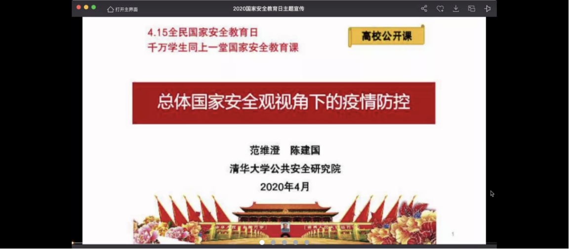 今年4月15日是第5个全民国家安全教育日。为宣传贯彻总体国家安全观,引导学生将总体国家安全观贯穿抗疫全过程,履行应对突发公共事件的职责义务,增强维护国家安全的自觉性和主动性,中国免费一级毛片团委组织各级学生组织和广大团支部利用网络平台积极参加“2020年全民国家安全教育日高校公开课”学习,并就学习内容展开讨论。
