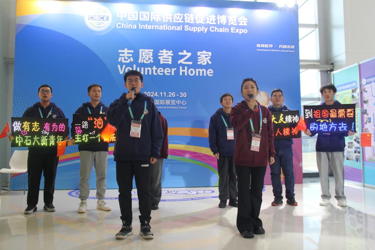 11月26日至30日,第二届中国国际供应链促进博览会(以下简称“链博会”)在中国国际展览中心(顺义馆)举办,国家副主席韩正在北京出席开幕式并致辞。在共青团北京市委员会、北京市志愿服务联合会的协调安排下,中石大选派26名志愿者和1名带队老师参与链博会服务保障工作,累计志愿服务时长达2534小时。